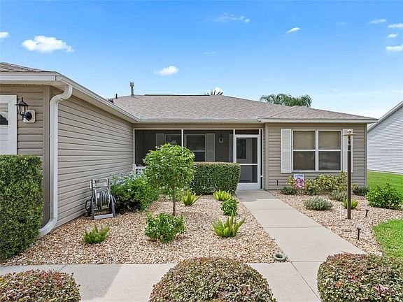 Under contract-accepting backup offers. This Charming 3-Bedroom 2-bathroom is located Home Near Sumter Landing Square Located just moments from the lively entertainment and dining options of Sumter Landing Square, this well-maintained 1,527 sq. ft. home offers the perfect blend of comfort, convenience, and Florida charm. Step inside to an open floor plan with vaulted knockdown ceilings that enhance the spacious feel throughout. The light and bright kitchen features stainless steel appliances, a gas stove, and ample counter space—perfect for preparing meals or entertaining guests. The primary bedroom includes an en-suite bath with dual sinks, a walk-in shower, private water closet, and his-and-her closets. The first guest bedroom is located at the front of the home and includes a spacious closet. The second guest bedroom is currently set up as a cozy TV room, also with a closet and sliding doors leading to the lanai. Guest bathroom with tub/shower combo Enjoy year-round comfort in the climate-controlled lanai, which opens up to a newly screened birdcage—ideal for relaxing or entertaining in the beautiful Florida weather. *Move-in ready condition—just waiting for your personal touch. New Roof 2022, HVAC2016, Screen room, Additional features include: *2car Garage Plus Golf Car Garage *Inside laundry room Don’t miss this opportunity to own a lovely home close to all the amenities in The Villages!