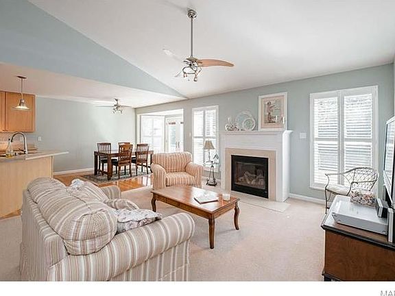 Welcome home to this lovely 3 bed, 3 bath brick front ranch conveniently located near Page/364 in O'Fallon. This well-maintained home features an open floor plan with vaulted ceilings, finished lower level and 3-car garage. The kitchen showcases hardwood floors, pantry, breakfast bar, bay window/door. The master has cathedral ceiling, fan, plantation shutters, and walk-in closet with built-in organizers. Master bath features double sinks, separate tub and shower, tile floor and tub surround. Open great room has gas fireplace, plantation shutters, fan, and office area, which could be used as a formal dining area. All bedrooms have walk-in closets. The large, finished lower level with stained concrete flooring adds a game area, family room, exercise area and full bath for over 3100sf total living area. Level, fenced backyard contains a pergola with stamped concrete patio for entertaining, .32 acre lot. Subdivision playground, pavilion and tennis court. HSA home warranty included.
