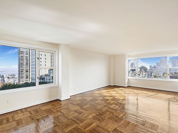 Welcome to your spacious 2-bedroom, 2-bathroom sanctuary in the heart of Russian Hill, San Francisco. This thoughtful layout allows for an easy flow between the living room and dining room in this light-filled apartment with views of the water, Coit Tower and Bay Bridge