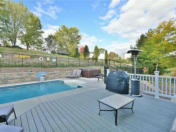 Beautiful Quality built Heartland home~ A Backyard Oasis w/the coveted heated built in pool (3.5 ft to 7ft.), sliding board, Fenced in. You'll be ready to open in the spring & enjoy all next summer! Home is Freshly painted! Nice office/den or flex school space at front of house. Spacious dining room w/hardwood floors & white wainscotting. OPEN Kitchen / Family room / SunRoom. Awesome flow & space. Kitchen has large kitchen island w/butcher block top, hardwood flooring, Granite Countertops, stone backsplash & space of a table if needed. Family room is cozy w neutral flooring & Crown molding~16x10 SunRoom w/walls of windows overlooking pool, walk out to the deck to entertain/swim/grill! Gorgeous Master Bedroom w/hardwood flooring, Large Walk-closet, Bath w/ceramic, sep. shower, double sinks! 3 Additional spacious bedrooms/full bath. Finished GameRoom w/ NEW carpet. Tons of Projection TV. Tons of Storage, large laundry, new roof 2020~ Located Mins. to Southpointe & I79 for easy commute!