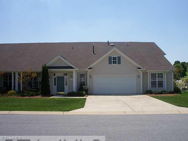 This great one level end unit has a "patio home" feel. Convenient NW 27410 zip code area. 9 ft ceilings with large open living room area. Kitchen has island, under cabinet lighting, and lots of cabinets. Neutral carpet & paint throughout and lovely hardwood flooring too. Master bathroom has dual vanity and large shower. Spacious master bedroom has lovely tray ceiling. Lots of windows add a light and airy feeling to this home. New generator included with home.Move in Ready! See Agent Only Remarks