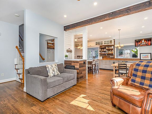 Continuing from the kitchen into the sunroom, you'll enjoy direct access to the backyard, which includes a terraced vegetable garden with drip irrigation, fruit trees, and a boulder-surrounded fire pit for enjoying time with loved ones. The overall landscape also is home to a multi-generational victory garden from local gardeners.