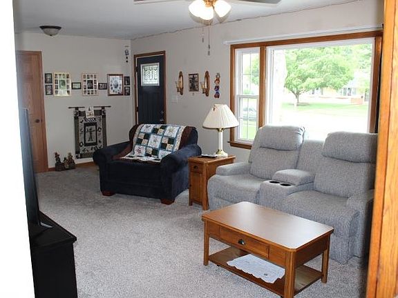 Clean updated home with extras. Detached 3-car 30x32 garage with alley access has new sidewalks from the house to the backdoor. Deck has been repaired and painted for Summer entertaining. Main floor bath has a new walk in shower. 3rd bedroom was converted into a nice laundry room and storage. Carpet replaced in primary bedroom and living space. A cozy eat in dining room looks out the sliding doors to a beautiful backyard. Central Air 4 years old.