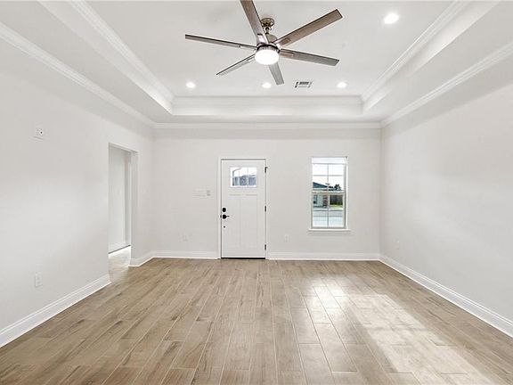 New Construction in the heart of St.Charles, located in an X flood zone. This custom 3 bed and 2 bath beauty has a brick mailbox, colorful landscaping, shutters, and gutters surrounding the home. The delightful large windows bringing in the natural lighting accentuate the rustic light fixtures against the airy wall color making them stand out. The living room features a modern trey ceiling accented by a remote-controlled ceiling fan. The breathtaking kitchen has a breakfast bar, granite countertops, soft-close cabinets, custom backsplash, and stainless-steel appliances. The primary bedroom has a trey ceiling and recessed lighting, along with a dedicated bath featuring top-to-ceiling porcelain tile, a soft-close vanity, a large walk-in closet, and a bonus closet for added storage. The open concept feature, along with the 9ft ceilings and large porcelain tile throughout blends seamlessly with the living room, kitchen, and dining room, making it great for entertaining during the holidays. This home awaits a new owner so schedule your showing today!!!!!