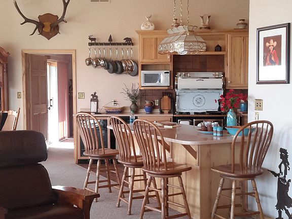 Unbelievable private recreational preserve, beautiful main home built on the edge of sloping hill overlooking 2 huge ponds with windmill aerators, 2 creeks plus 1/4+ mile of River frontage, 2400 SF shop, lots of storage outbuildings, 1660 SF 3 BR guest house, landscaped yards, springs. Lots of Whitetail & Mule Deer, Pheasant, Waterfowl and Small Game. Trout Fishing in River & Ponds. Great views
