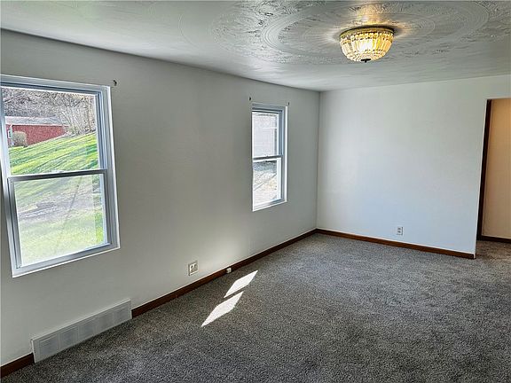 Home for sale in Jefferson Hills School District on almost an acre lot (0.837 acres). Master bedroom, full bathroom and laundry room on 1st floor. Large kitchen/dining area with vaulted ceiling and access to large covered deck and yard. Bedroom and den on upper level. Full open basement. Brand new windows and wall to wall carpet. Lots of off street parking.