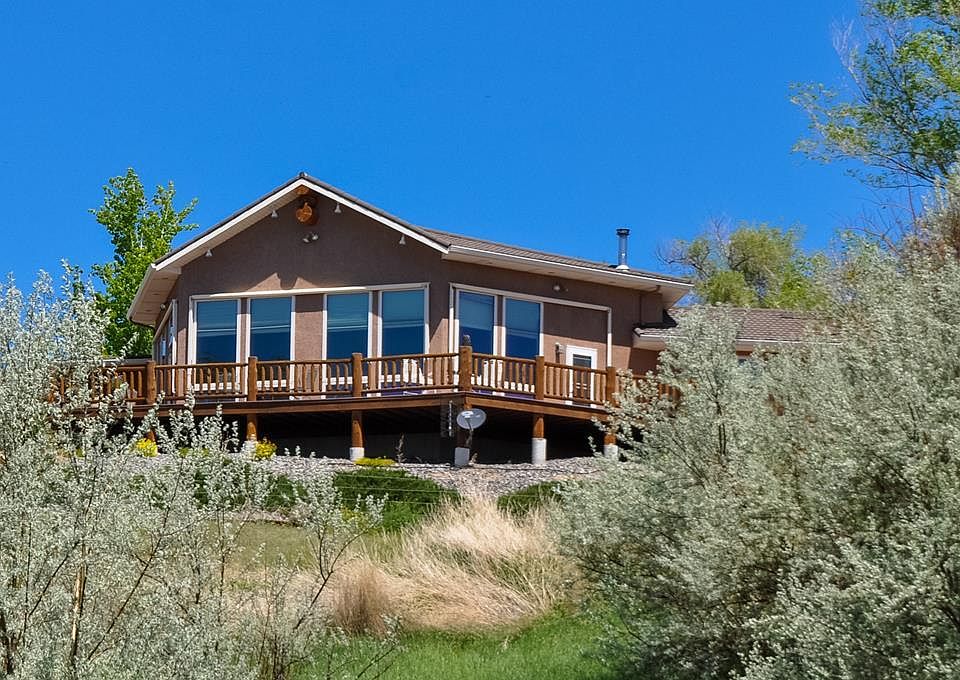• Exterior Features: Acreage Fenced, Corrals, Fenced Yard, Flat Terrain, Horse Property, Irrigated, Mountain View, Natural Gas to Property, Patio, Rolling Terrain, RV Parking, Sprinklers, Storage Building, Hunting, Fishing, Recreational, Guest House, Pond, Shop, River Frontage, Covered Deck