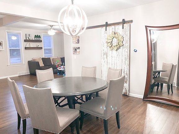 Nicely remodeled two story with open floor plan. Lots of natural light and beautiful updates. New entry door. Updated kitchen cabinets with center island and stainless steel appliances. Main floor laundry. Upstairs bathroom remodeled in 2019. New wood-type flooring in living room and dining room. New roof and windows in 2012. New furnace and central air units in 2018. Freshly painted interior. Fenced backyard on a corner lot.