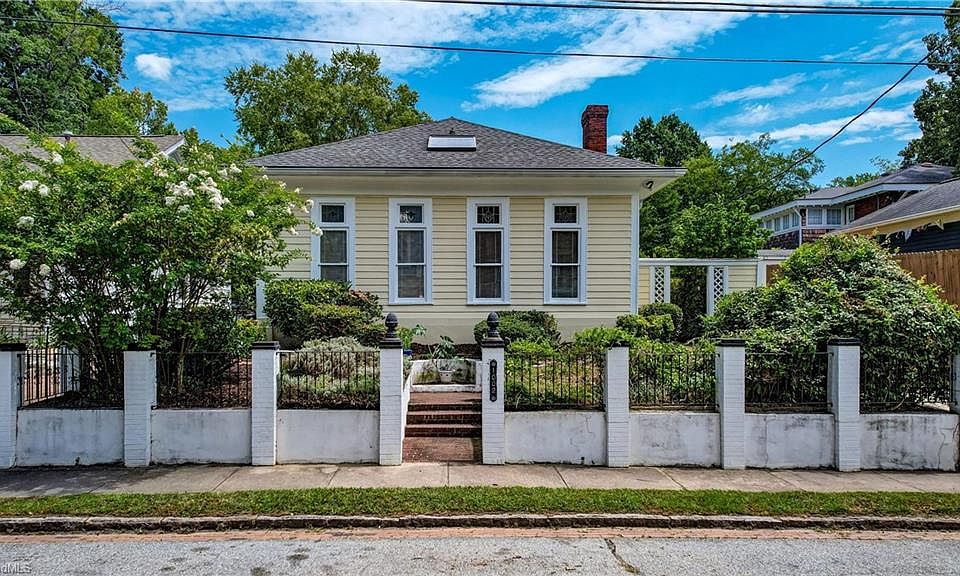 This adorable home provides an incredible opportunity to reside in desirable Historic Fisher Park! One level living with bonus space + half bath upstairs that could be playroom, studio, or overflow bedroom space. Enter into a spacious living room with incredible decorative trim, fireplace, built-ins, & tall ceilings. Wall of windows overlook the deck & charming rear yard. The dining room has pretty windows providing great natural lighting. The cozy kitchen has updated lighting, tons of cabinet space, a picture window over the sink, & access to outdoor space. ML primary bedroom is AWESOME: Sitting area with fireplace & a NEW Bath with an oversized shower, double vanity, & soaking tub, all with attractive & current decor. Hall bath has a classic clawfoot tub. Beautifully landscaped, the backyard has an outdoor storage building & easy off street parking. This home is blocks from neighborhood parks & downtown Greensboro providing easy access to Tanger Performing Arts Center & Restaurants.