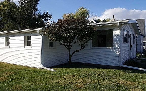 Freshly painted home with so much to like! Hardwood floors, new kitchen floor, new garage door, new windows and siding. Private parking area in back by garage also. Large back yard. Very cute place as a starter home or for a small family.