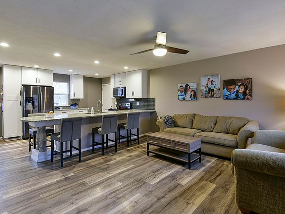 Beautiful, partial brick home in the heart of Ozark! Just steps away from the Finley River Park! Large mature trees and a lovingly landscaped front yard. You'll enter into the large living room with a custom, modern electric fireplace that includes a hidden built-in storage shelf. Kitchen was recently updated with white cabinetry, granite counter tops and stainless steel appliances. Luxury vinyl plank flooring throughout the main living areas. The large deck overlooks the spacious, fenced in yard with firepit to entertain family and friends. New roof in 2021. Inside this three bedroom, one bathroom house you will find it has been meticulously maintained and updated.