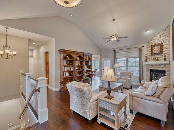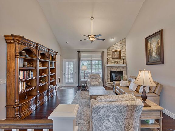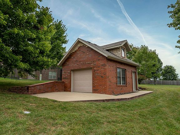 Custom walk-out basement home in the highly desirable Barrington Springs subdivision! This all-brick residence boasts 5 bedrms, bonus rm, 3 full baths, & is situated on a spacious .6-acre lot at the end of a cul-de-sac. The property features 4-car garage, w/three oversized stalls in the attached garage & separate 18x20 custom brick garage/shop equipped w/its own garage door. Stunning hardwood floors flow throughout the main living areas, highlighted by vaulted ceilings & cozy stone gas fireplace. Partially covered deck. The eat-in kitchen is a delight, featuring custom maple cabinets, stainless steel appliances, & generous island for meal prep/gathering. The spacious laundry room offers a sink, ample counter space, & built-in broom cabinet. The primary bedroom is a true retreat, complete with tray ceilings & an ensuite bathroom featuring a dual sink vanity, a luxurious 6' jetted tub, tiled walk-in shower, & large walk-in closet. The split-bedroom floor plan includes two additional bedrooms and a full bathroom on the main level. The walkout basement has 9-foot ceilings, a spacious family room with a brick gas fireplace, and a wet bar. You'll find two more bedrooms, a versatile bonus room that can serve as a hobby space or office, a full bathroom, and a concrete storage room that doubles as a tornado shelter with a steel door. Step outside to the stunning screened-in porch and a separate patio area, all overlooking the beautifully manicured yard complete with irrigation system, lush landscaping, and mature trees. This home also features a highly efficient 90% HVAC system w/an electric heat pump & gas backup. Recent upgrades include fresh interior paint, updated flooring including new carpet, new roof, floored attic space, plantation blinds in primary bedrm, and new 20kw Kohler generator. The community offers fantastic amenities including a clubhouse and pool, and is conveniently located just one mile from The Mill and Ozark Finley Farms.