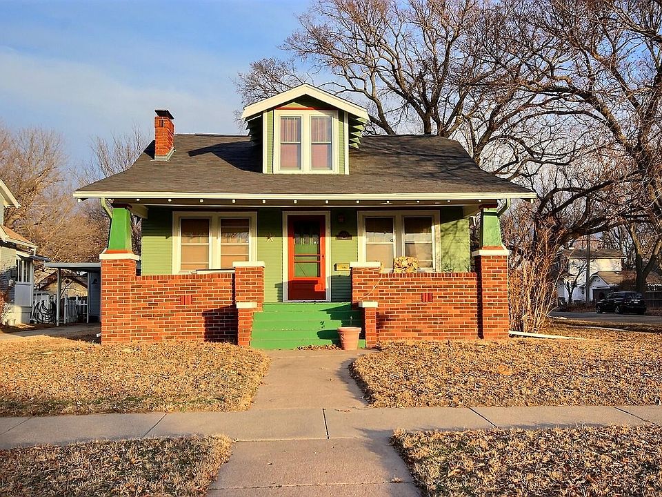 Welcome Home! Presented by Erika Head of Better Homes and Gardens Real Estate Alliance, this 4 bedroom, 2 bathroom, beautifully updated bungalow in the highly desired Riverside neighborhood is waiting for you. Come sit and enjoy sunsets against the green view of Sim Park Golf Course from the covered front porch. This home is certainly a charmer being in such a prime location on a corner lot, so come inside and see all of the updates and you are sure to be impressed! The interior space brings a good mix of vintage and modern, with high ceilings, a swinging door from the kitchen to formal dining room, French doors into the living room, built-in book cases, a decorative fireplace and even a claw foot tub in the main bath for your soaking pleasure. A good portion of the main level and upstairs bedroom have real hardwood flooring throughout, while the basement has newer carpets and tile. The main floor features the Primary and second bedrooms, main bath room, a large, inviting living room and kitchen brimming with cabinetry and buffet serving countertop. Upstairs is a third bedroom, which gives privacy for sleeping, crafting, another office area, or anything you prefer! As you head down to the basement, you will see it has been transformed and finished with many contemporary upgrades. Here you will find the fourth bedroom, an office/bonus room, a second full bathroom, a bright and spacious laundry room with built-in folding areas, a wash sink, and even an ironing board that folds up into the wall when not in use. Need storage? Don't fret... there is SO MUCH ROOM in the dry, lighted, unfinished portion of the basement for that too. Bring all of your stuff, as it will most likely fit! Going outside to the backyard, there is a lovely patio with patterned bricks, a wide driveway and oversized one car garage that you will enter off of Harrison St. This roomy backyard has updated fencing, which connects and fully fences in the yard around the garage. Minutes from Botanica, Wichita Art Museum, and Old Cowtown Museum. In addition to the Sim Park Municipal Golf Course right across the street, Sim Park offers fitness, walking and bike paths, with picnic and recreational areas too. Riverside Park is also nearby, with additional playgrounds, splash park, picnic areas and more! For a home that is this move in ready, in this neighborhood, with these views... what are you waiting for? Come see it today!
