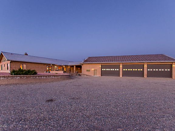 Custom built 3 bedroom, 3 bath home located on 10 acres in Chino Valley. Accessible by paved roads, this amazing home has 2418 square feet of main living, a full basement with bathroom and a 4346 square foot 10-14 detached car, drive-through garage/workshop plumbed for its own future bathroom/office. Attached 3 car garage. All garage doors are insulated. Basement and both garages have in-floor heating. Granite counter tops throughout kitchen, bath, and laundry. Wood burning fireplace and surround sound in family room. Beautifully electric gated entry with Chamberlin motion sensor and fully fenced property. The amenities are too many to list. This is a must-see home.