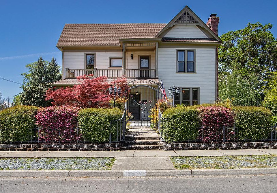 Welcome to the Croxton-Coe House. This Beautiful Victorian Home is listed on the National Historical Registry. Old World Charm abounds as you walk through the iron gate, mature landscaping, to the Covered Porch & Entry with Stained Glass Door. The main Level Features a Parlor with Beautiful Original Pocket Door & Ornate Fireplace, Sunlit Living Room, Spacious Dining Room, Full Bath w/ Clawfoot Tub, & Laundry Room. Farm Style Kitchen w/ Granite Counters, Bar w/Built-in Stools, Custom Pantry & French Doors to the Covered Deck. Upstairs you'll find a Spacious Primary Bedroom w/ Beautiful Fireplace, Walk-in Closet, & Private Deck off of the Newly Remodeled en-suite Bath, 3 Additional Bedrooms, & Remodeled Full Bath w/Large Storage Closet. Home has recent Updating including Electrical, Mini Splits, Insulation, & New Gas Furnace. Situated on .32 Ac Lot, property is Fully Fenced, Detached Garage w/Loft Storage & Art Studio Space, 3 Covered Decks, Raised Garden Beds, Koi Ponds, & Lush Lawns.