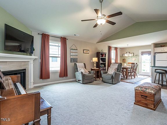COUNTRY LIVING! No HOA! The charming front porch welcomes you to this 1,498sf 3 bedroom/2 bath ranch on .90 acres; Gorgeous vaulted ceiling and fireplace in family room that opens to the kitchen and dining room; Primary bedroom with tons of natural light and large closet; 2 additional bedrooms; Garage with 240V outlet for charging your electric vehicle; Rear patio perfect for entertaining and grilling!