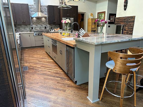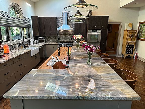 Beautiful, luxurious modern home set on nearly 2 1/2 acres just steps from incredible restaurants and shopping in the heart of Brentwood but with the feel of Lieper's Fork! This recently updated, spacious single level home has vaulted ceilings, hardwood floors and natural travertine throughout. Boasting one of 3 gas fireplaces, an incredible 14' split level granite and butcher block island, Decor range, Sub Zero fridge, custom hard wood kitchen cabinetry, ceramic modern farmhouse sink, built in ice maker and a Miele steam oven, this kitchen makes entertaining enjoyable and easy! All 4 en-suite bedrooms have exterior doors leading to the salt water pool, Bullfrog Spa, travertine and Tigerwood pool deck and the adjacent fire pit. You can also chill in the screens room or talk a siesta in the hammock! All of this while viewing your expansive rolling hilled and fenced property that backs up to Radnor Lake State Park where you will find excellent hiking trails along the hills and lake where you will see deer, owls, eagles, otters and all kinds of other nature! Other features of this home include speakers and LED lighting throughout, a recently replaced roof including 11 new skylights that allow so much natural light in through the entire home, new facia, cedar soffit and gutters as well. Also upgraded was the tankless water heater and whole house filtration system. Also includes two EV chargers.
