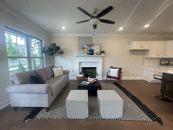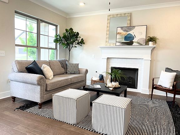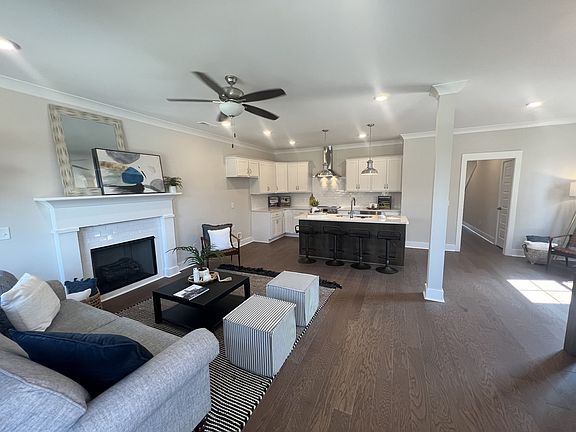 CHECK OUT OUR 2/1 BUY DOWN RATE PROGRAM WITH PREFERRED LENDER CMG FINANCIAL on this select inventory home!!!! Covered front porch entry into main living area. Includes convenient floor mount plug. Perfectly sized kitchen with chef's range hood, stainless appliances and a motion sensor kitchen faucet. Quartz island overhang seats up to 5. Gleaming white cabinets with handles and a subway tiled backsplash are all included. Upgraded stove with front control knobs. Gas fireplace with tile surround anchors the open great room. Hardwood flooring in main living area. Primary 1st floor bedroom suite features rectangular undermount sinks on raised height double vanity. Full sized separate soaking tub and shower. Upstairs includes enormous open bonus room plus 2 additional bedrooms sharing 1 bath. Unfinished attic for storage! MOVE IN READY