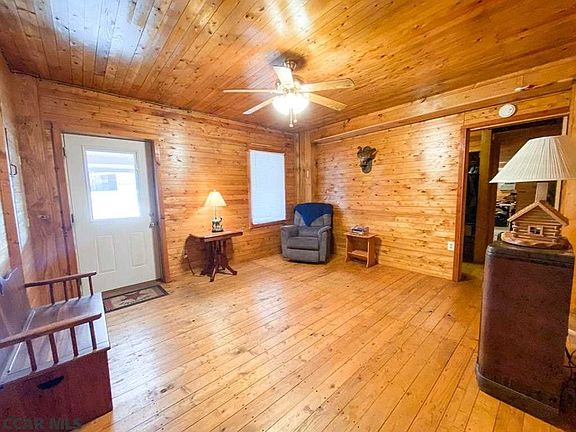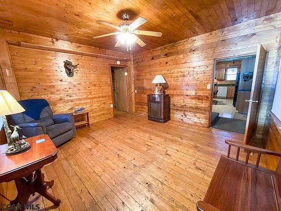 This home offers 3 bedrooms, 2 baths and 2363 SF of living space. If you are looking for unique, this property is just that! What was previously the town's fire hall has since been transformed into a spacious, rustic style home featuring hand-planed pine interior, hand-painted stained glass, a large open kitchen, first floor owner's suite, two workshops, and a hobby room. From the large wrap around porch look out over 3.37 beautiful acres of land with various fruit trees, berry bushes, and grape vines perfect for the wildlife. Just minutes away, enjoy access to the Susquehanna River for fishing and kayaking and state game lands that are home to the famous Pennsylvania Elk population.