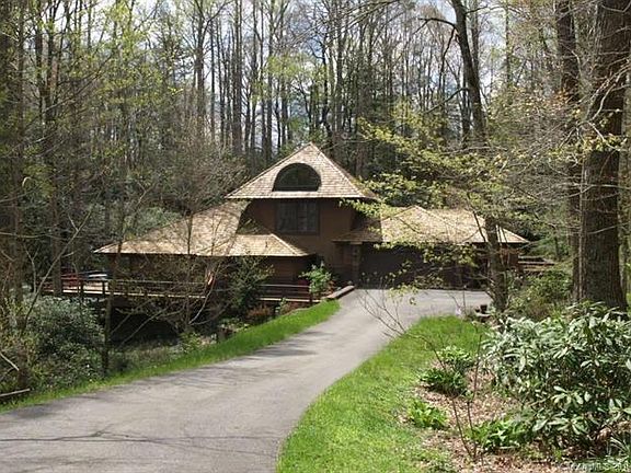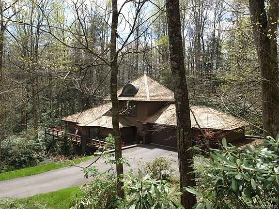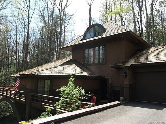 Designed with distinction under the shade trees of Linville Ridge Country Club. Captivating hard coat stucco and wood home with many architectural details inside and out. Grandfather lake and mountain views, main level master suite includes walk in closets and 2 baths, office/bedroom flex space, upper vaulted bedroom suite features arched windows and will surely impress, great room highlighted with a custom wood burning fireplace, over sized 2 car drive thru garage (great to use for entertaining) and has additional storage area, front and rear courtyard for extended parking. Screened porch, wrap around decks for additional outdoor living space, hot tub, 2.4 acres of mature growth Rhododendron and forest with easy access in and out of the gated community that features 24 hour security, trash service and snow removal.