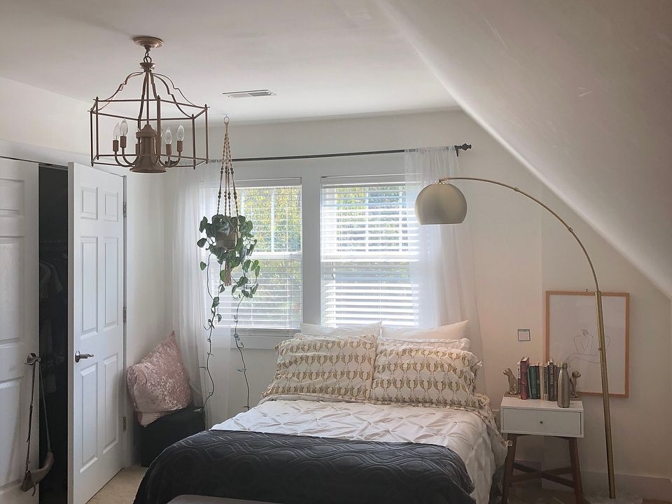 Entire top floor available in shared house. Includes bedroom, en suite bath, and private loft/sitting area. Lots of natural light, freshly painted, move-in ready. Large shared kitchen and living area on main floor. Exterior includes two large porches with swings, fire pit, and backyard. Annual lease