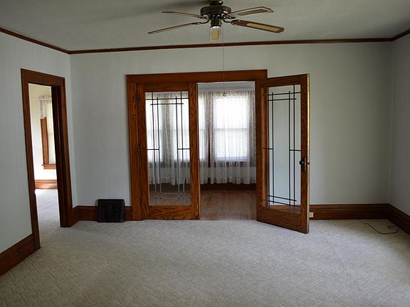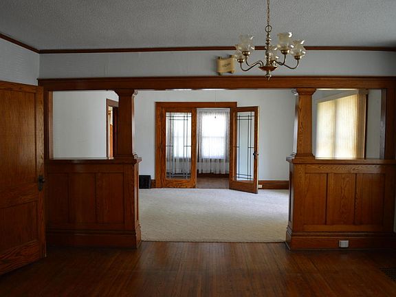 Beautiful woodwork with original hardwood floors. Large dining room with window seat. Living room has French Doors that lead to the den. Kitchen has updated cabinets with informal dining area. There is an oversized garage with lots of storage and off street parking.