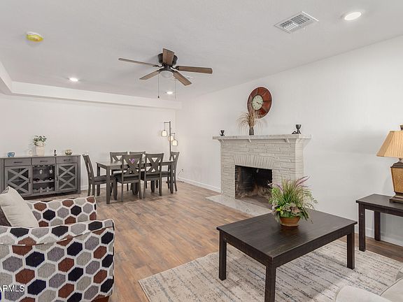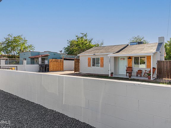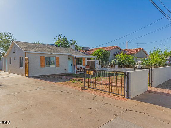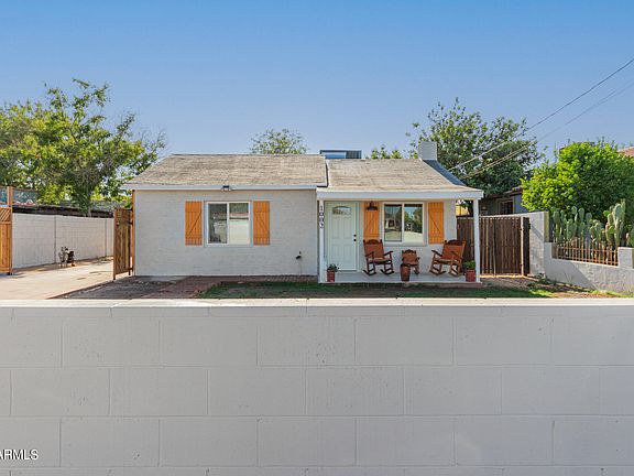 Welcome to this BEAUTIFULLY REMODELED brick home in a great Phoenix location! With 1100 sqft of space, it offers 3 bedrooms & 2 bathrooms. This fully fenced property displays a gated driveway & a cozy front porch. Enter to find an inviting family room with an original fireplace that has been conserved! New wood-look flooring, new windows, new HVAC, and freshly painted interior & exterior are features worth mentioning. The upgraded kitchen boasts an SS built-in microwave, granite counters, mosaic tile backsplash, recessed lighting, and white shaker cabinetry. Main bedroom has a spotless bathroom w/tiled step-in shower. Both bathrooms are new as well! Outback, you have enough room for relaxing or entertaining. It will not last long!