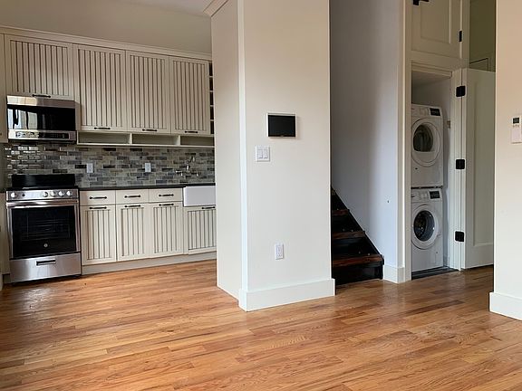 april 1 move in Loft-Style Townhouse with Private Roof Deck A Perfect Blend of Old & New Ridgewood/Bushwick border, this stunning loft-style townhouse apartment is a rare gem. Step inside to find soaring 10-foot ceilings, exposed brick walls, and rustic wood beams, preserving the charm of old New York while embracing modern luxury. The American-made country kitchen is a chef's dream, featuring a farm sink, stainless steel appliances, and sleek finishes. The subway-tiled bathroom exudes elegance, while the in-unit washer and dryer, smart intercom, and energy-efficient AC & heat make daily living effortless. Your own private roof deck, accessible directly from the apartment. Outfitted with LED lighting and power outlets, it's the perfect spot for summer BBQs or quiet city nights under the stars. Located near the L (Halsey) and M (Seneca) trains, with trendy cafes, organic markets, and buzzing nightlife just steps away, this home is the perfect mix of convenience and character. Pets under 30 lbs. welcome! Email now for more info.