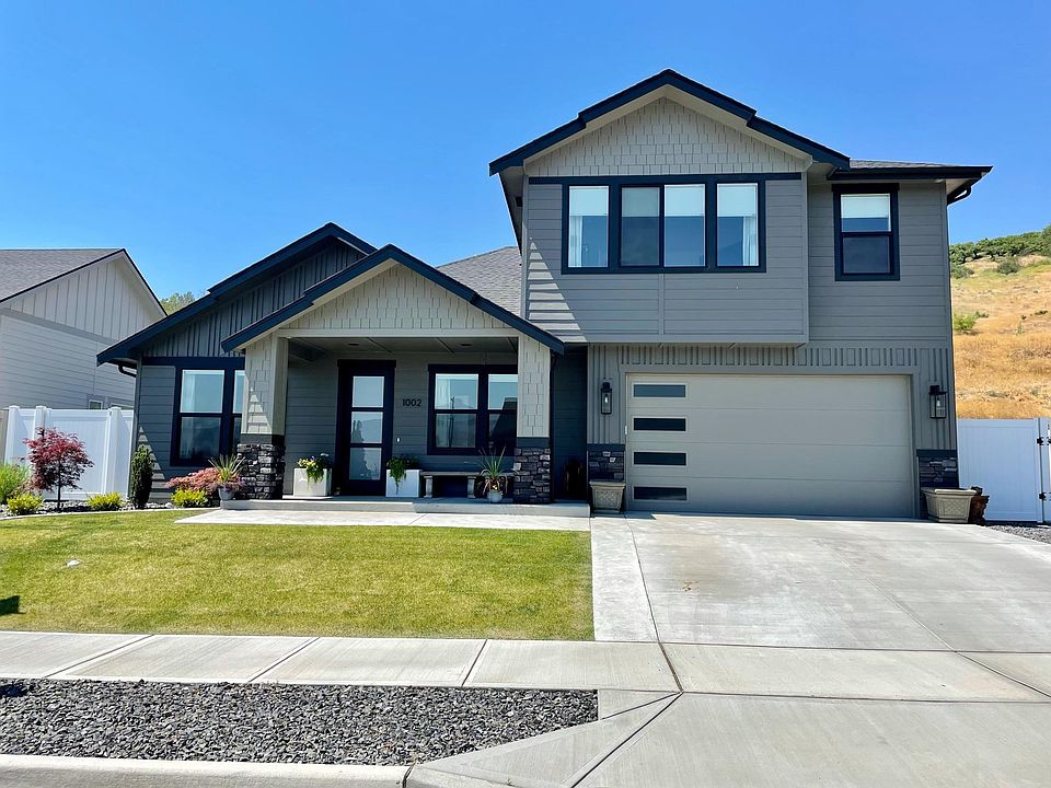 This stunning Roberts Construction craftsman style 2-story flows effortlessly with classic elegance & thoughtful design! Beautifully appointed 2465 sq ft home with 4 beds & 3.5 baths. Main level offers coffered ceilings, gas fireplace w/ rock surround, built-in shelving, private office, secluded den and much more. You will fall in love with the open kitchen featuring a gas range, expansive island, designer quartz countertops, walk-in pantry, and 2 translucent windows for ample light. Main level master bedroom features a sophisticated bath complete w/ an oversized shower, dual vanity sinks, soaking tub, & an oversized walk-in closet. The covered patio is perfect for outdoor enjoyment & includes a fully fenced backyard, mature landscaping, irrigation system & retaining wall.