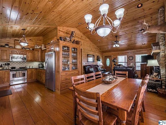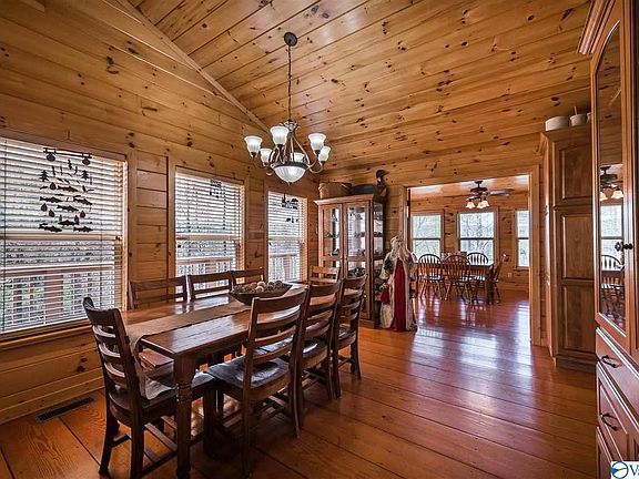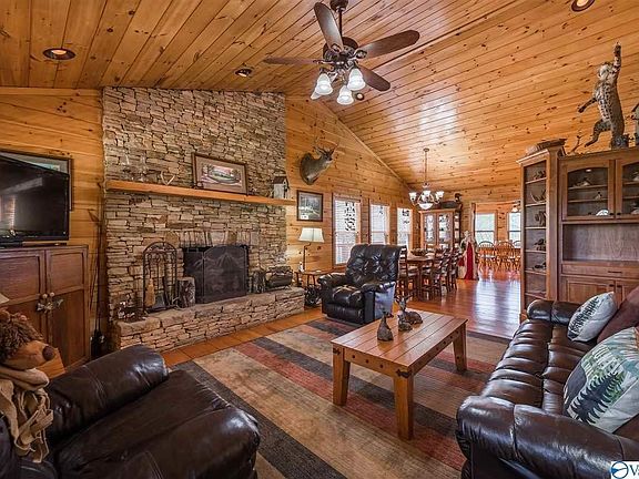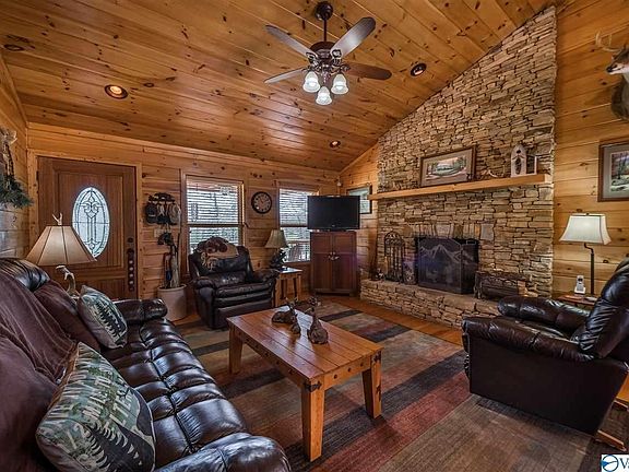 Mentone, What a view! First time offered, 800 frontal feet on Little River, this gorgeous property offers the main home with 3000 square feet, 4 beds 3 baths spacious rooms, slate tile, wood burning fireplaces, custom cabinetry, Corian countertops, Travertine tile bath with a walk in shower. Take a look at the view of Little River and just a small ride to Lake LaHusage via kayak or canoe, Mountain Laurel and Rhododendron galore. Bonus an 800 sq ft guest home with a fully finished garage, use it for an Airbnb. Take a swim or relax and fish the fully stocked lake, this property is landscaped with perennials and has raised bed gardens for vegetables. Call for your appointment today!