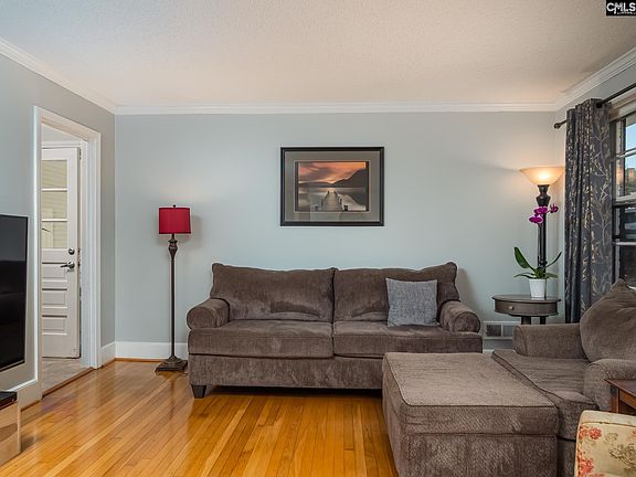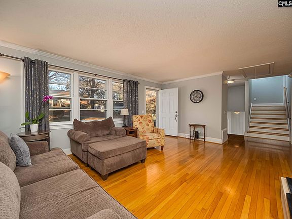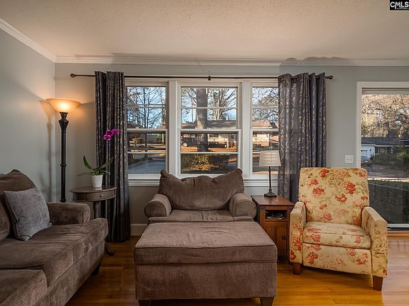 Charming white brick 3 bedroom floor plan situated on a large corner lot with a circular driveway close to shopping, dining, I-20, and I-26. This home has a very flexible floor plan with 2 living spaces. Hardwood floors and tile throughout. No carpet! Large formal dining space. Kitchen is large with plenty of cabinets, six burner gas cook top, garbage disposal, and breakfast nook with space for a large table. Huge, Florida room great for entertaining. Back yard is fully fenced and has a large shed for extra storage.