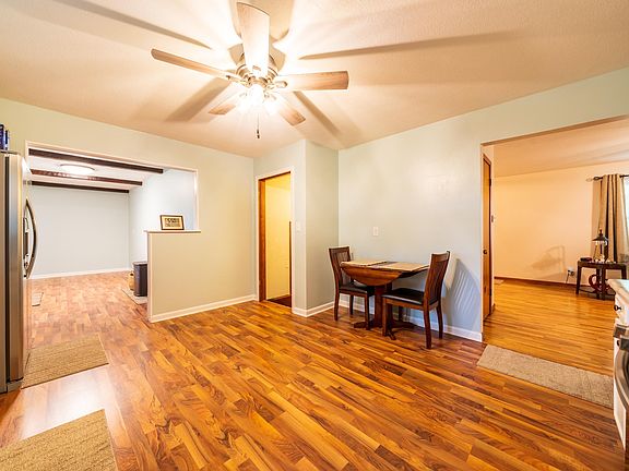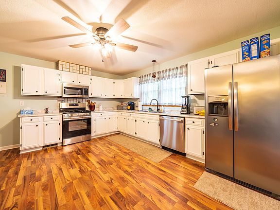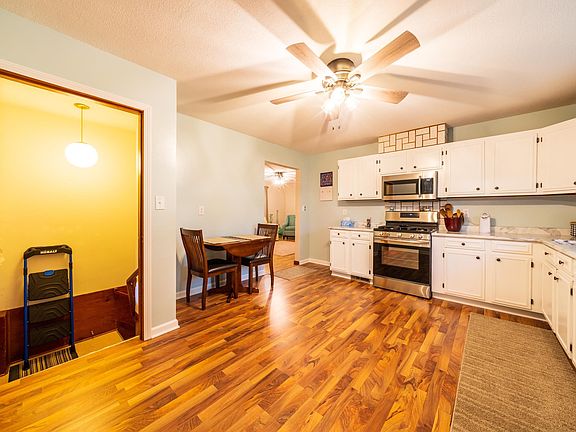 This 3 bedroom, 1 1/2 bath ranch style home has lots to offer with many updates including roof in 2022. Home has original hardwood floors, nice size rooms, a bonus room off of the kitchen could be second family room, dining room or office space. Stainless steel kitchen appliances stay, you will love the 5 burner gas stove, washer and dryer stay as well. Tons of potential in the basement with partially finished spaces. Sits on a nice size lot with privacy fence, deck and shed. Covered front porch and an additional pad for offstreet parking plus new garage door and opener. Close to the park and La Monte school. An ideal location for a short commute to Sedalia or Knob Noster. Come take a look.