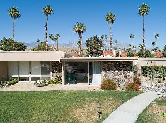 This 1964 Tamarisk West condo project designed by S. Charles Lee has been extensively renovated. Beautiful exterior rock walls welcome you to this 2BD/2BA home with floor to ceiling windows that accentuate the high ceilings and enormous rooms. Most windows feature custom coverings with blackout draperies and screen shades. New luxury tile flooring throughout is done in a striking herringbone pattern. The kitchen was completely remodeled and expanded to include two large pantry closets, quartz counter tops and all new Kitchen Aid appliances. The master bedroom/bath was made wheelchair accessible with over-sized doorways and level shower entrance. A large private courtyard is asses-sable from the dining area and master bedroom. Majority of interior electrical lines were replaced, plus additional outlets, and new circuit breaker by permit. In 2017, new AC and water heater were installed and a major section of the roof was replaced. Tamarisk West was on tour for Modernism Week.
