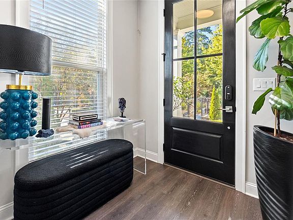 Gorgeous & unique Townhome with FINISHED Basement and PRIVATE FENCED BACKYARD overlooking green space & lake w/fountain. The main floor includes KITCHEN LEVEL GARAGE, a luxurious OPEN PLAN with white kitchen cabinets housing upgraded appliances including DOUBLE OVENS, Cambria Quartz tops & WATERFALL ISLAND, a dining area & spacious family room with LINEAR REMOTE CONTROLLED FIREPLACE. Custom MODERN RAILINGS line the staircase up to the lake facing PRIMARY SUITE which features CUSTOM CLOSET SYSTEM & spa bath with VAULTED CEILING, FREESTANDING TUB & separate shower. Two more spacious bedrooms, shared bath w/DOUBLE SINKS and laundry with folding counter & storage cabinetry finish out the 2nd floor. The basement features a bedroom/office w/WIC currently used as recording studio, a full bath, MEDIA ROOM & tons of storage. OUTDOOR LIVING space includes open upper deck & lower SCREENED PORCH with electrical and TV mount already setup for you. Custom upgrades totaling over $200k were chosen by PROFESSIONAL INTERIOR DESIGNER so this is not the typical builder basic home! GATED neighborhood features HOA maintained yards (front AND back) and provides easy access to GA 400 with the convenience of being mere minutes from Canton Street restaurants and shopping!