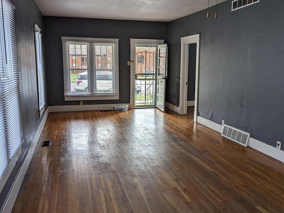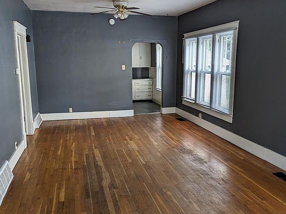 Freshly painted 3 bedroom, 1 bath house with newly remodeled bathroom! This house has central air and heat, fenced in backyard, detached 1 car garage, upstairs washer/dryer hookups and hardwood floors. Centrally located in the middle of town in a safe neighborhood. The renter is responsible for all utilities and yard maintenance. There is no smoking in the house. No pets of any kind. Street parking only.