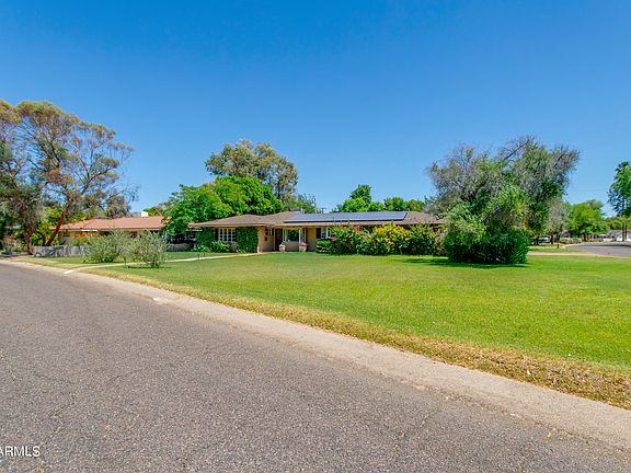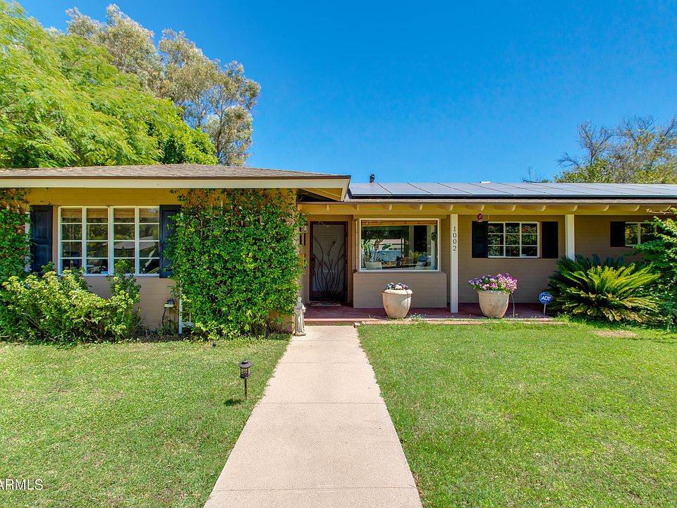 Spacious irrigated grass corner lot with mature shade and fruit trees. This updated ranch-style home features a new roof, HVAC, plumbing, granite countertops and stainless steel gas appliances. HUGE primary bedroom, bonus room, two walk-in closets, ample storage. Leased solar panels are paid through December 2032. Located in the desirable North Central Phoenix community, you're within walking distance of excellent neighborhood restaurants and cafés. Move in as-is or renovate further to make it your own.
