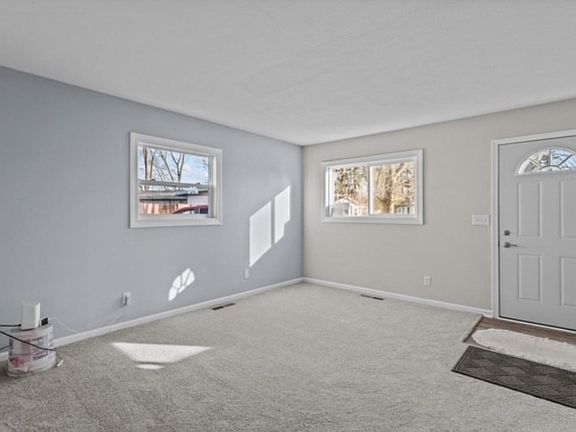 Discover tranquility in this updated 3-bedroom, 1-bathroom ranch home situated in a peaceful cul-de-sac in Kokomo. With a charming blend of brick and vinyl exterior, this home features a one-car attached garage, a shed, and a fenced backyard for privacy. Step inside to find a newly renovated interior with energy-efficient vinyl windows (2022), newer carpet (2024) in the bedrooms and living area, and new vinyl flooring throughout the spacious kitchen. The updated bathroom boasts a new vanity and fixtures, while the kitchen shines with brand new laminate countertops and new appliances. Additional upgrades include a new roof, wide gutters, and a brand new sliding glass door that opens to a lovely concrete patio, perfect for outdoor relaxation. Enjoy the serenity of the cul-de-sac lifestyle while being just moments away from the vibrant amenities of Kokomo. This charming home offers a perfect combination of comfort and modern updates, making it an ideal home for those looking for a peaceful place to call home.