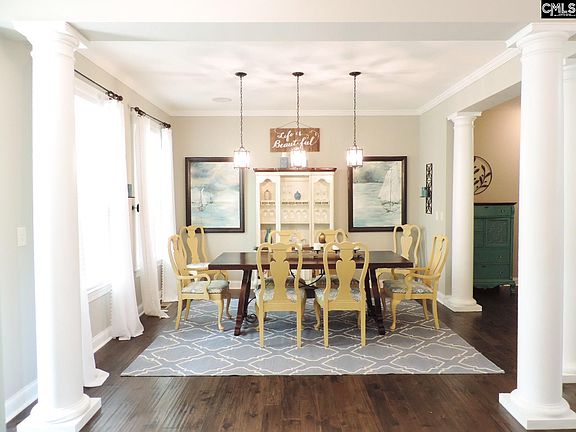 Custom-built craftsman home has 3240 sqft, 4 bedrooms, 2 1/2 bathrooms, plus a large bonus room & loft. TONS OF UPGRADES!! Home is situated on 1.5 acres that is mostly wooded for privacy across from Lake Murray. Beautifully landscaped, front porch with swing, & level yard is perfect for a future pool! Home has a dining room with columns, & an office/bedroom on main. The dining room opens to the expansive great room with 2 story open area, wrought iron balcony, fireplace, & custom built-ins, & is open to kitchen & 2 story breakfast nook. The kitchen boasts granite countertops, stainless appliances, a bar with seating for 4, a pantry, white cabinets, & travertine backsplash/floors. Hardwoods throughout most of the first floor & half of the upstairs. The kitchen, great room, office, garage, diningroom, back porch/screen porch are wired for home audio, listen to music throughout! Updated half bath with vessel sink. The mainfloor master has tray ceilings, & a large walk-in-closet with a door that opens into the laundry room for convenience & an ensuite bathroom which has a granite countertops, vessel sinks, a whirlpool bathtub, a large shower with 2 showerheads, and a built-in tv over bath that will convey! Upstairs you will find large bonus room with pool table, built in custom full wet bar with beer kegorator, minifridge, winecooler, surround sound. Upstairs there is a loft, 2 bedrooms with a jack-in-jill w/ granite counters. Large backyard & Screen Porch. Chapin Schools!