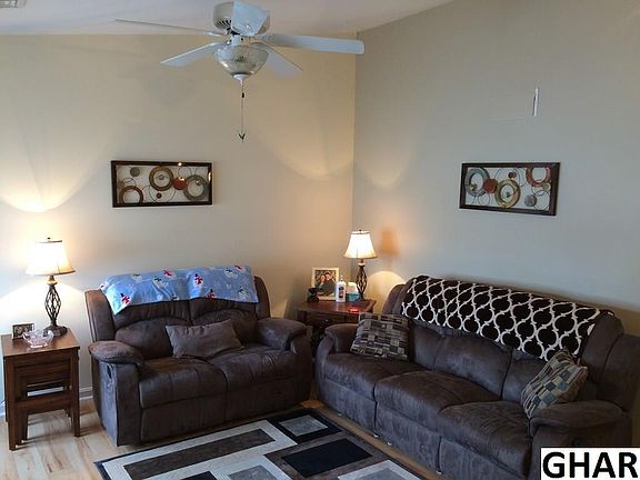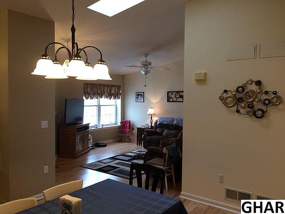 Bright, open, well-kept RANCH townhome not a condo w/ new laminate flooring installed 2010. Vaulted ceiling w/ skylight in dining & living. Lots of closets. Both BRs have in-suite bath. Spacious master with walk-in closet. Energy efficient. Gas water heater 2013. Attached 2 car garage with off-street parking for addl 4 cars. Easy one level living in quiet setting with low fees-no snow or grass to worry about...compare! Near I-83. Listing Agent:BRIAN KUGLER Broker:KEYSTONE REALTY GROUP, INC - 717-657-2001