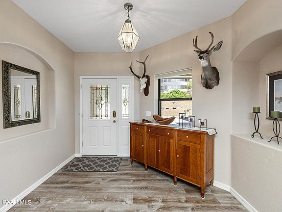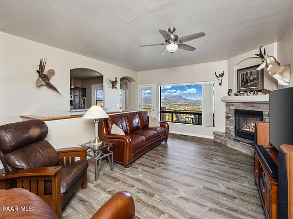 Don't miss out on the opportunity to own this recently updated home, showcasing what could possibly be the best view in Yavapai Hills. Situated on over half an acre of land, this property boasts a prime location backing to HOA open space that leads to state land. The main floor living area is thoughtfully designed and features a primary suite and a potential secondary en suite bedroom, both offering bay windows that frame breathtaking views of Prescott's most iconic landmarks. Whether it's the stunning Granite Dells, Watson Lake, Granite Mountain, Thumb Butte, or Glassford Hill, every direction you look presents a picturesque panorama. The home has undergone recent updates, including the installation of luxurious vinyl tile throughout the living areas. The eat-in kitchen has been