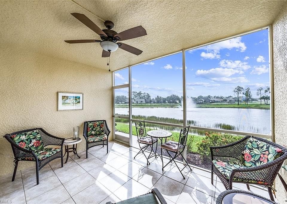 Beautifully maintained first-floor condo in the desirable Lakeside Hideaway community! This 2-bedroom, 2-bath residence offers a bright southern lake and fountain view, an open layout, and tasteful upgrades throughout. The kitchen features quartz countertops, Samsung stainless steel appliances (2019), and a breakfast bar perfect for entertaining. Additional highlights include plantation shutters in both bedrooms, Impact-resistant windows and doors, and a new A/C system (2023) for year-round comfort. Enjoy peaceful mornings on the screened lanai In-Unit Laundry, and the privacy of a split floor plan. Lakeside Hideaway is a pet-friendly, elevator-equipped community featuring a heated pool and BBQ/Picnic Area. Ideal for both full-time residents and investors - can be rented up to 12 times per year with a 14-day minimum lease. Conveniently located near shopping, dining, FGCU, RSW Airport and the beautiful beaches of Bonita Springs and Barefoot Beach.