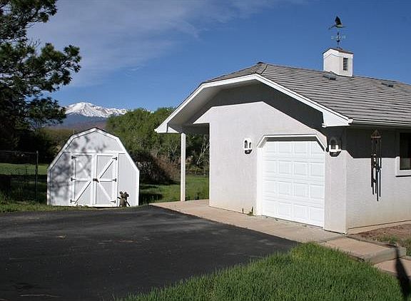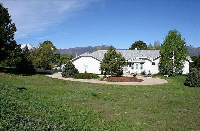 A rare find! Located on 2.5 acres, this custom built home offers a gorgeous country setting with fabulous views of mountains and Pike's Peak. Long list of custom upgrades and special features including gourmet island kitchen adjoining family room with Pier 3-sided fireplace, coffered ceiling, light oak cabinetry, circle front entry drive. Master suite with 5-piece bath, double-faced fireplace, walk-in closet. Barn + 4th garage space - zoning permits 2 horses. Easy access to I25 and just minutes to downtown Springs, and convenient commute to Castle Rock and Denver. A must to see!