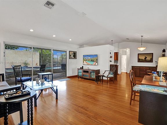 Incredible opportunity for amazing location near The Falls... new roof in 2023, fantastic schools w/ top ratings, 1/3 acre corner lot, hardwood floors thru-out, concrete pad for boat or RV parking, work shed w/ electricity, split bdrm plan and more! Step into spacious open concept living w/ volume ceilings bathed in the light of lots of windows and views of the beautiful pool! Large kitchen renovated in 2016, new dishwasher. New washer and dryer in big laundry room w/ loads of storage! Amazing yard w/ mature trees and their soft breezes! Close to an active YMCA, restaurants, US 1, the turnpike, and Metrorail! And...enjoy easy day trips to the Florida Keys for snorkeling, fishing and boating! Home is family ready “as-is” or make this a showcase of your dreams w/ renovations and additions!