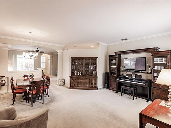 Neat and Clean Three bedroom home in Millbrook - maintenance free section of Greenfield Plantation. Convenient Floor plan allows for utilizing space in a multitude of ways. Currently set as Living/Dining room and separate Family room leading to lanai. The large kitchen with built in breakfast seating off Family Room has plenty of cabinet space and a pantry closet. There is also an Inside Laundry with deep sink! The Split bedroom plan with large Owners Retreat features a walk-in closet and bath with two tiered vanity, soaking tub and separate shower. There are Two additional bedrooms; one currently used as office with a full bath between rooms. New A/C 2020. A Two car garage, Super corner lot and friendly golf course community (Membership NOT required) await a family, retiree or snowbird! A Low monthly fee pays for grounds maintenance, irrigation and community pool. Golf clubhouse, community pool, Freedom Elementary and Haile Middle School are a short walk away.
