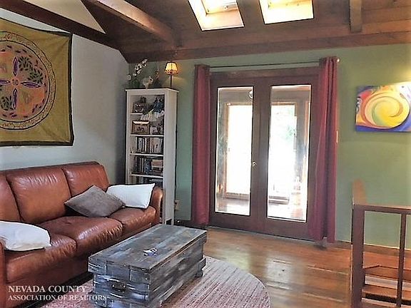 Nestled in Nevada City, enjoy this quaint Single level, Artist cabin oozing with charm, personality and seasonal creek. Redwood siding, Doug Fir casement windows and tasteful use of wood throughout spilling into the finished basement and leading you to the rolled rocked creek area. Minutes to downtown Nevada City and everything shopping. Skiing and Recreation moments away. Swim the Yuba, ski the slopes in Tahoe, entertain on the several decks. 1768 square feet of tasteful useful wood throughout this artist retreat. You feel warm and fuzzy entering through the courtyard and through the blue door. Tile to wood flooring, open beam ceilings with wood cased windows allowing streaming light in every room. All on .67 acres with seasonal creek streaming over rolled boulders.