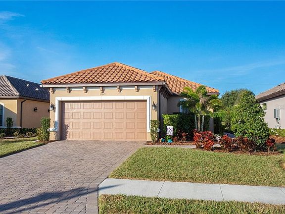 Welcome to the Esplanade at Artisan Lakes! This extremely manicured gated community is the epitome of Florida living and is nestled in a very serene environment. The neighbors all greet every passing car with a friendliness rarely experienced and sometimes it is even paired with a wagging tail. As you arrive at the property you will notice the detailed and lush landscape. An oversized paved driveway that leads to an oversized 2 car garage and allows multiple parking spots. The minute you enter home from the right hand side you are greeted by a very peaceful and quiet setting. As you you enter this home you are very clear this home was designed with extraordinary designer finishes and impeccable taste. The home has a light neutral palate with a gourmet chefs kitchen that is complimented by the white cabinets and upgraded stainless steel appliances. The home is 2 years young and had been barely lived in so everything shows like it is a brand new home. The peaceful setting in the back yard is the perfect place to dine al fresco in total privacy. The inviting master bedroom is also decorated in a very quite and welcoming palate making it feel very Zen. The primary bedroom with ensuite bath and its oversized vanity and shower welcome you to have a spa experience! The giant walk in primary closet has shelves floor to ceiling. The other bedroom has an adjoining bathroom and is just steps off the dining room, study and chefs kitchen. Upgrades galore include 8 ft doors and tray ceilings. We have huge list of the upgrades available for the asking. Boasting a huge laundry room and an oversized two car garage this home will be the perfect choice for living at the finest community in upper Manatee County. Situated very close to the intersection of 75 and numerous shopping areas you will find yourself never wanting to leave. The community center is the "in" gathering spot for many. With a complete gym and spa like area that adjoins tennis and pickle ball courts and a pool all your friends will be envious of you and will wonder why it took so long to live in Paradise.