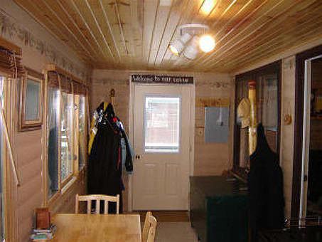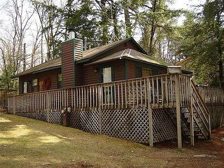 Absolutely a Northwood's Dollhouse! Year'round cabin at waters edge. 300' shared frontage faces west lending spectacular sunsets. 2 BR plus a 21 x 7 year round lounging/sleeping porch. Wood-burning fireplace, wrap-around deck and fire-pit. Plenty of Northwoods appeal. Units have a pier, as well as, a one car detached garage and designated overflow parking. Convenient shared boat landing for launching on one of the area's better fishing lakes. All recreation lake, bring your boat, jet ski and water-skis. The snowmobile trail runs from the Bear Skin Trail right across the lake for the convenience of the snowmobile enthusiasts or you can just enjoy your morning run or walk on this extensive trail. Maintenance free, just move right in!
