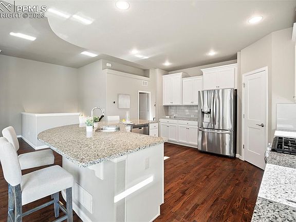 Welcome to your new oasis in the sought-after Wolf Ranch neighborhood! This impressive 5 bed, 3 bath home is a true masterpiece, blending elegance, style, and functionality. With stunning hardwood floors, vaulted ceilings, room darkening shades, on demand hot water heater, basement storage, and a captivating covered patio with a view, this property offers the perfect combination of luxury and comfort. From the moment you step inside, you'll be enchanted by the open and inviting living spaces. The hardwood floors add a touch of sophistication and warmth, enhancing the overall charm of the home. The high ceilings create an airy, spacious atmosphere that's perfect for both relaxation and entertainment. The kitchen is a culinary enthusiast's dream, equipped with modern appliances and ample counter space, making meal preparation a breeze. Whether you're cooking for your family or hosting a dinner party, this kitchen will inspire your inner chef. You'll also appreciate the thoughtful addition of room darkening shades, allowing you to control the light and privacy in your home with ease. The basement offers valuable storage space, perfect for keeping your belongings organized and easily accessible. Located in the highly desirable Wolf Ranch neighborhood, this home not only offers a prime location but also access to fantastic community amenities. Parks, walking trails, and top-rated schools are just a stone's throw away, ensuring that you have everything you need right at your doorstep. In summary, this 5 bed, 3 bath home in Wolf Ranch is a true masterpiece of style and comfort. With its hardwood floors, high ceilings, room darkening shades, and captivating outdoor space, it embodies the essence of modern living. Don't miss the opportunity to make this exceptional property your own – schedule a showing today and experience the elegance and functionality of this dream home!