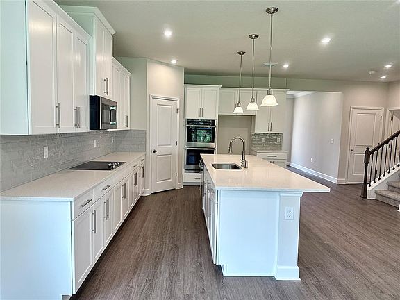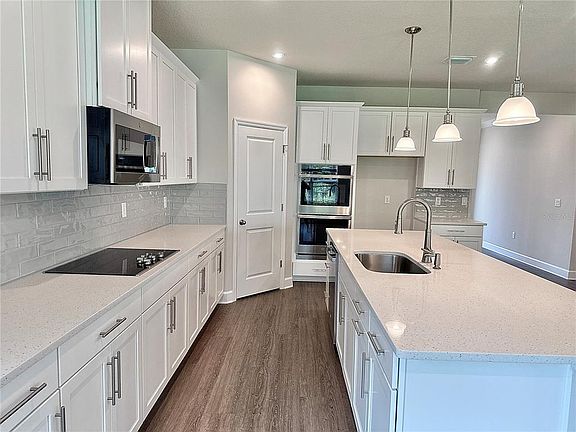 QUICK MOVE-IN. New Key West-inspired single-family home community with an all-new amenity center and features conservation homesite. Our home offer 9'4" ceilings first floor, Luxury vinyl plank flooring throughout the first floor. Study with glass french doors, extended covered lanai. White shaker soft close cabinets, gourmet kitchen with double wall oven, backplash, quartz countertops throughout. Owner's suite with tray ceiling and en suite bath with soaking tub, tile shower with seat, also overlooking conservation. The Lynn Haven single-family home lives up to expectations. Relax on your spacious front porch, then head inside, where you'll find a quiet study. Your foyer leads to the open family room and gourmet kitchen with an island, where favorite meals and memories will be made. Enjoy outdoor living on your extended lanai, and store seasonal items in your three-car garage. There’s even more to love upstairs with a loft and a full bath. In your owner’s suite, enjoy double vanities and a walk-in closet. All Ryan Homes now include WIFI-enabled garage opener and Ecobee thermostat. **Up to $25,000 CLOSING COST ASSISTANCE AVAILABLE WITH USE OF BUILDER'S AFFILIATED LENDER**. DISCLAIMER: Prices, financing, promotion, and offers subject to change without notice. Offer valid on new sales only. See Community Sales and Marketing Representative for details. Promotions cannot be combined with any other offer. Actual home may differ from photos.