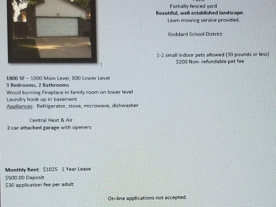 Well established landscape. Quiet neighborhood - close to Pawnee Prairie park. Tenant pays for all utilities: Gas, electric, water & trash. Tenant responsible for watering lawn, shrubs & flowers. Landlord responsible for mowing/trimming lawn.